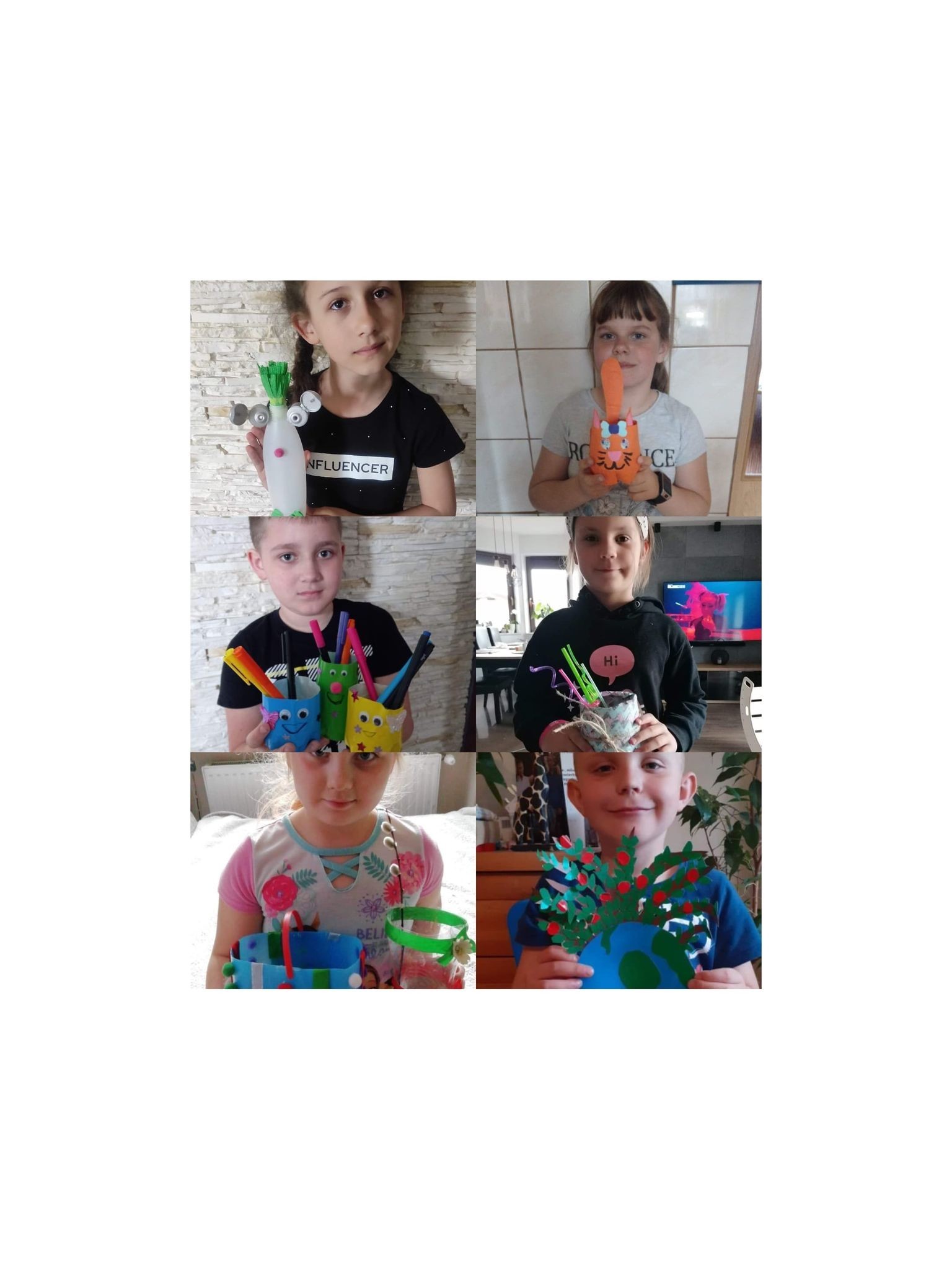 Uczniowie klasy II przygotowali wraz z rodzicami piękne plakaty oraz przedmioty z recyklingu
