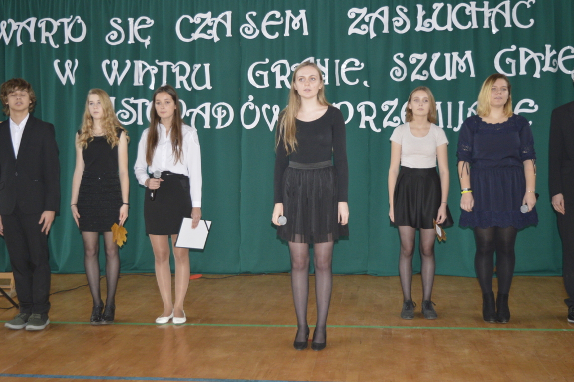 W dniu 9 listopada o godzinie 11.11 w wielu szkołach uczniowie odśpiewali hymn państwowy. Nasza szkoła również przyłączyła się do tej inicjatywy - odśpiewaniem hymnu narodowego rozpoczęliśmy uroczysty apel "Dla Niepodległej". Montaż słowno - muzyczny w wykonaniu uczniów klasy VIII i III gimnazjum oraz klasy I i II szkoły podstawowej przypomniał znaczenie słów Ojczyzna, patriotyzm, wolność, niepodległość.