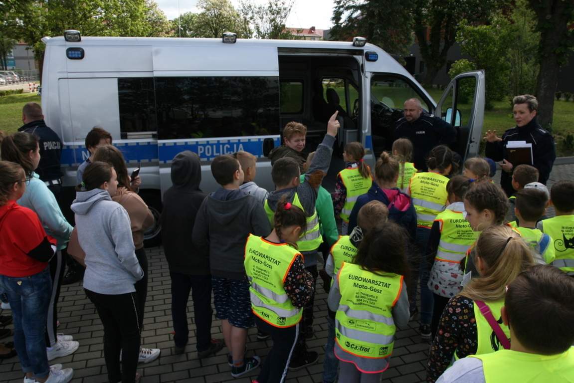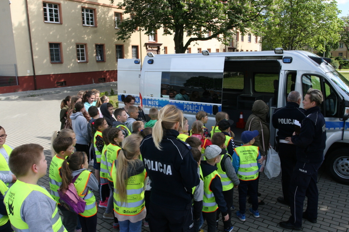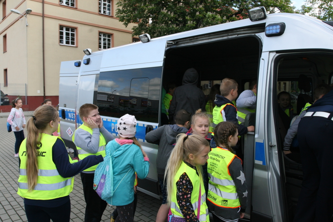 29 maja uczniowie klasy: I, III i V odwiedziły Komendę Powiatową Policji w Lęborku. Pod przewodnictwem asp.szt. Magdaleny Zielke obejrzały większość pomieszczeń znajdujących się w Komendzie Powiatowej Policji. Zapoznały się ze specyfiką pracy policjantów i obejrzały sprzęt wykorzystywany w codziennej pracy funkcjonariuszy. Dowiedziały również się, kto to jest policjant dyżurny i czym się zajmuje.