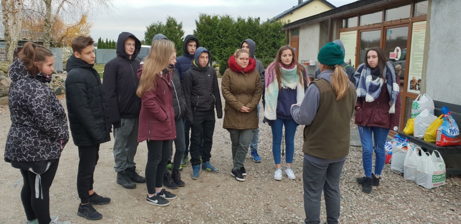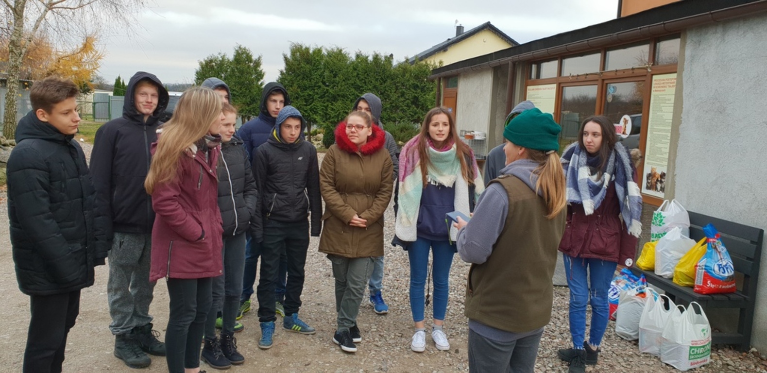 Wolontariusze z III gimnazjum wraz z opiekunami - panią Sylwią Janicką i Martą Prosińską - Żydyk odwiedzili w dniu 21.11.2018 schronisko "Bajer" w Małoszycach. Wolontaiusze przekazali karmę ,zabawki i koce, które zbieraliśmy na terenie naszej szkoły. od poczatku października.