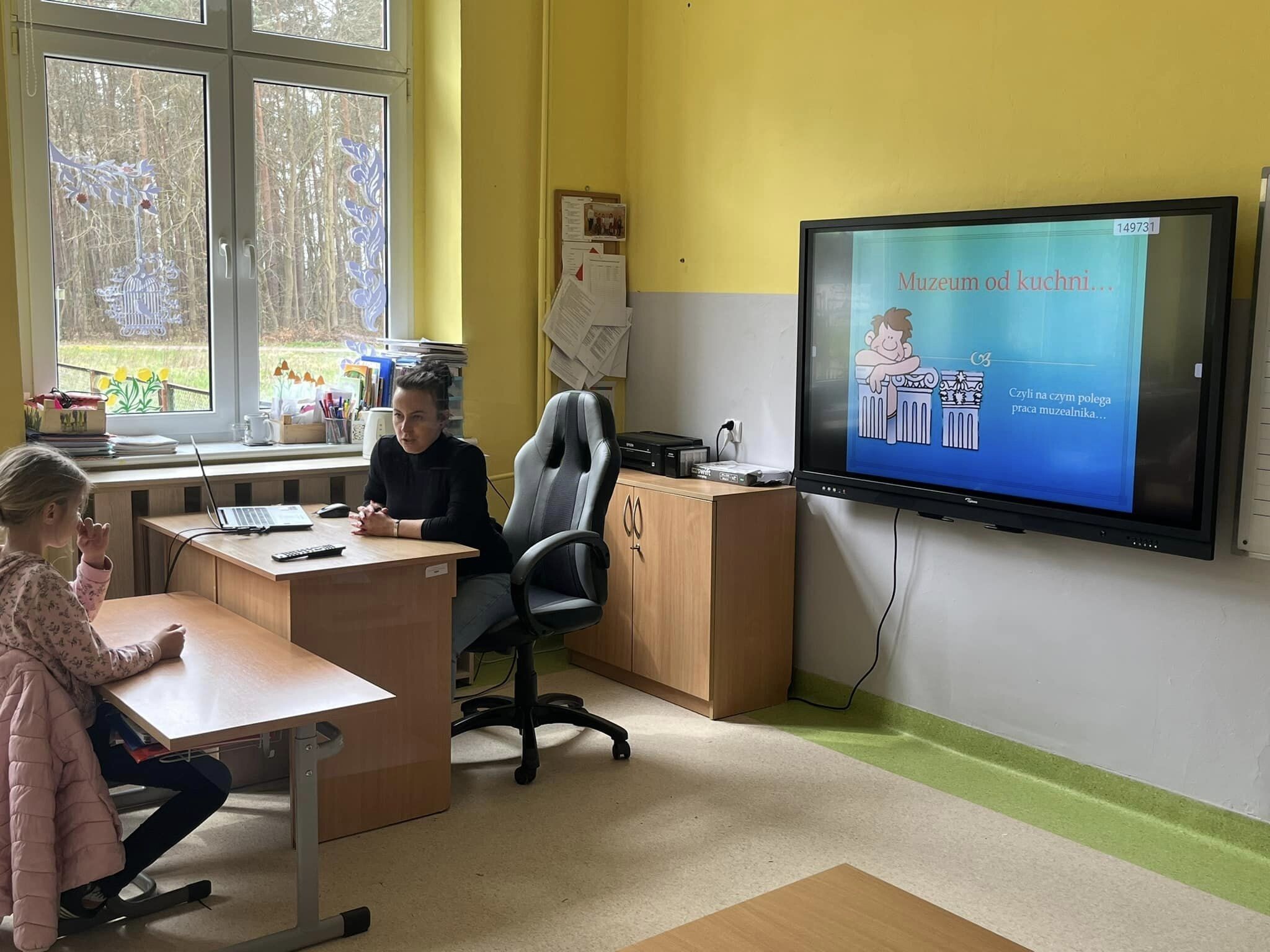 Na zajęciach świetlicowych odwiedziły nas Panie Iwona i Martyna z Muzeum w Lęborku. Opowiedziały dzieciom kto pracuje w muzeum i na czym polega praca m.in. archeologa czy historyka. Uczniowie odpowiadali na pytania, zgadywali czym są przedstawione na zdjęciach zabytki i zadawali pytania. Okazało się, że wbrew pozorom praca w muzeum wcale nie jest nudna.