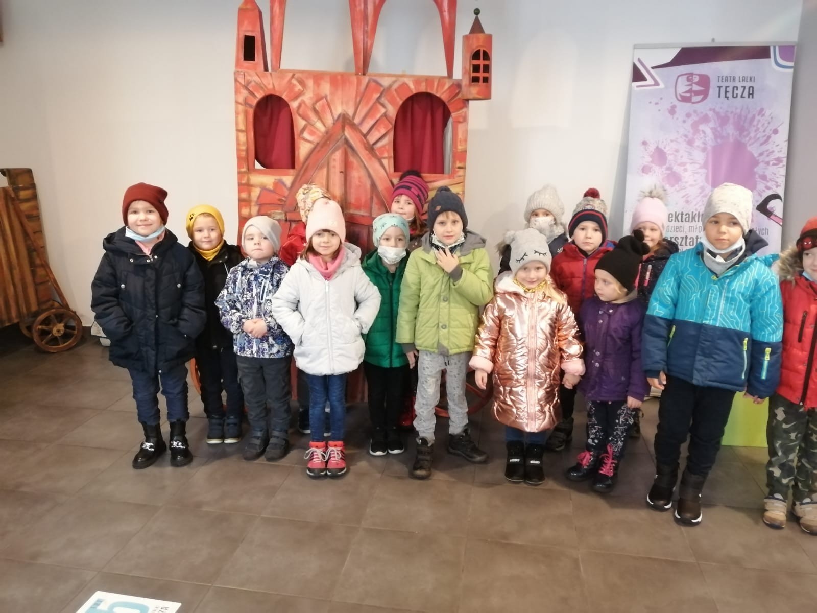 W listopadzie nasze przedszkolaki pojechały na spektakl "Niedźwiedź i Masza - gdzie jest moja kasza?" do Teatru Państwowego Lalki "Tęcza" w Słupsku. Dzieci z ogromną niecierpliwością oczekiwały rozpoczęcia spektaklu. Bardzo spodobały im się lalki oraz aktorzy, którzy wcielali się w rolę głównych bohaterów. Radość podczas oglądania okazywały spontanicznym śmiechem oraz gromkimi brawami na koniec widowiska, co z pewnością jest dowodem na to, że dzieciom się podobało.