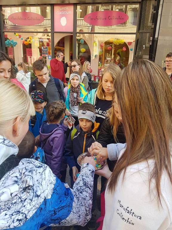 Na zakończenie wycieczki uczniowie odwiedzili Manufakturę Cukierków,gdzie zaopatrzyli się w mnóstwo kolorowych słodyczy oraz zakupili pamiątki na pobliskich straganach.