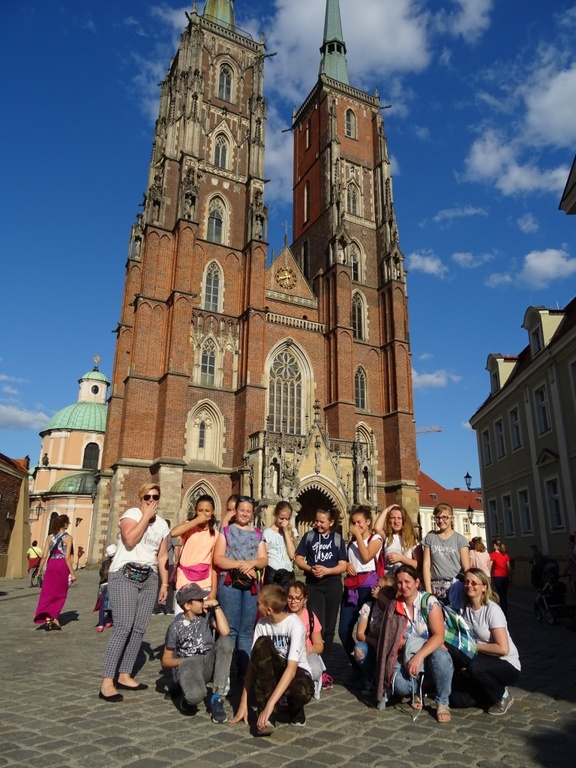 W dniach 19-21 maja klasa VI-ta oraz członkowie Kabaretu Leśni Skauci brali udział w wycieczce do Wrocławia. Na pierwszy ogień poszło słynne "Afrykarium" mieszczące się we Wrocławskim ZOO , które zrobiło na nas piorunujące wrażenie - szczególne słynny "tunel z rekinami". Po smacznym posiłku w pizzerii - kolejna atrakcja w postaci wspaniałych widoków ze "Sky Tower" najwyższego wieżowca we Wrocławiu. Następnego dnia po mszy świętej uczestniczyliśmy w warsztatach artystycznych we Wrocławskim Ośrodku Kultury , gdzie zapoznaliśmy się z nowoczesną sztuką multimedialną . Później kolejna super atrakcja "Panorama Racławicka" .W trakcie licznych spacerów poznawaliśmy uroki i zabytki Wrocławia - oraz wspaniała karuzela w starym stylu. Na koniec jeszcze jedna atrakcja- specjalny pokaz multimedialny- "Wrocławskie fontanny" . Ostatniego dnia poznawaliśmy najsłynniejsze zabytki starego rynku , odbyliśmy rejs statkiem po Odrze oraz przejażdżkę kolejką gondolową nad Odrą . Dziękujemy opiekunom: p.Marzenie Maszocie ,p.Alicji Teliczan za wspaniała atmosferę , a p.Marcie Prosińskiej i p.Jarkowi Greszcie za zorganizowanie tej wspaniałej przygody.