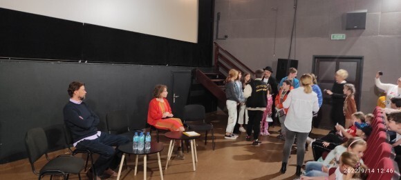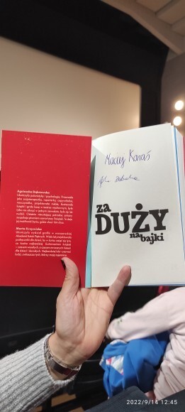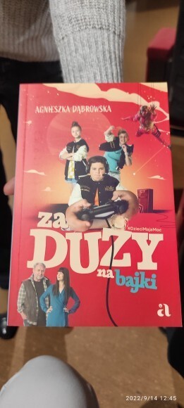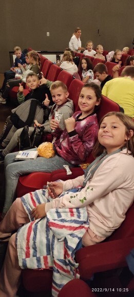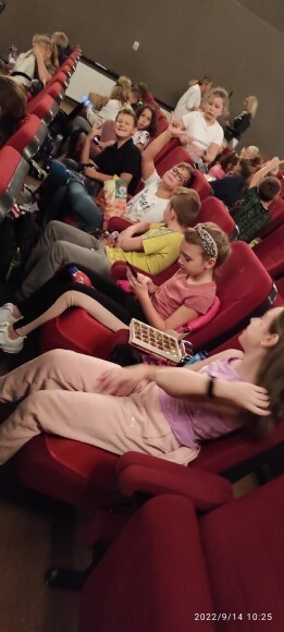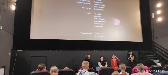 A teraz fakty związane z naszą szkołą - w środę 14 września klasa 4, jako jedyna spoza Lęborka, miała możliwość obejrzenia filmu "Za duży na bajki" z 2022 roku. Po spektaklu nastąpiły dwie niespodzianki - najpierw wylosowano nagrody dla niektórych uczestników filmu - z naszej szkoły szczęście dopisało Julii Mokos. Zupełnym zaskoczeniem było dla uczniów spotkanie z autorką książki, na podstawie której został napisany scenariusz filmu - Agnieszką Dąbrowską, producentem filmu - Mikołajem Pokromskim oraz odtwórcą głównej roli w filmie "Za duży na bajki" - czternastoletnim Maciejem Karasiem, uczniem z Krakowa. Uczniowie mieli możliwość zadania pytań wybranym osobom, poproszenia o autograf oraz zrobienia niepowtarzalnych zdjęć z wybranymi specjalnymi gośćmi. Oczywiście największą popularnością cieszył się młody aktor, który w filmie w reżyserii Kristoffer Rusa wystąpił po raz pierwszy na ekranie.