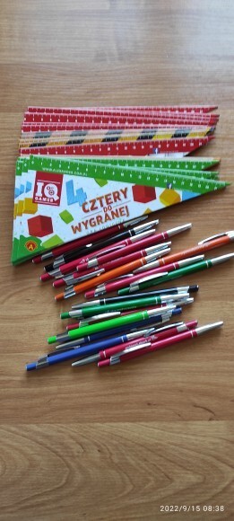 Po spektaklu każdy z uczniów otrzymał okolicznościowe upominki - kolorową ekierkę i długopis.