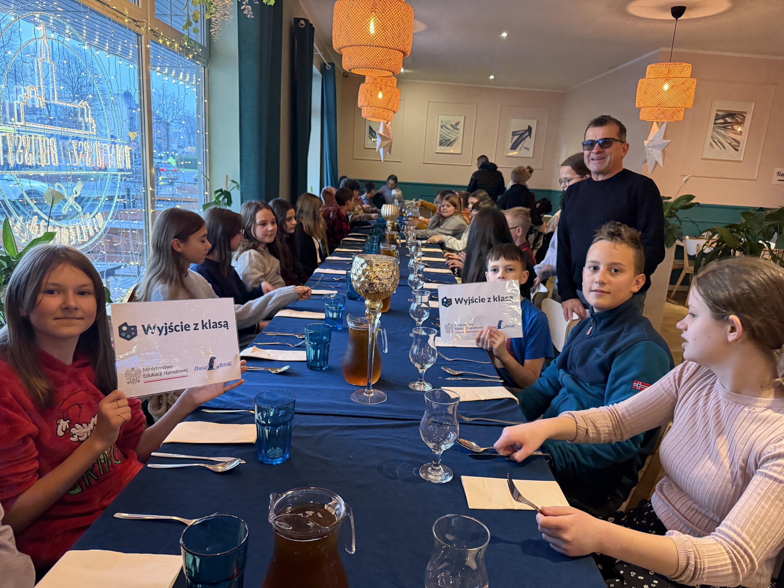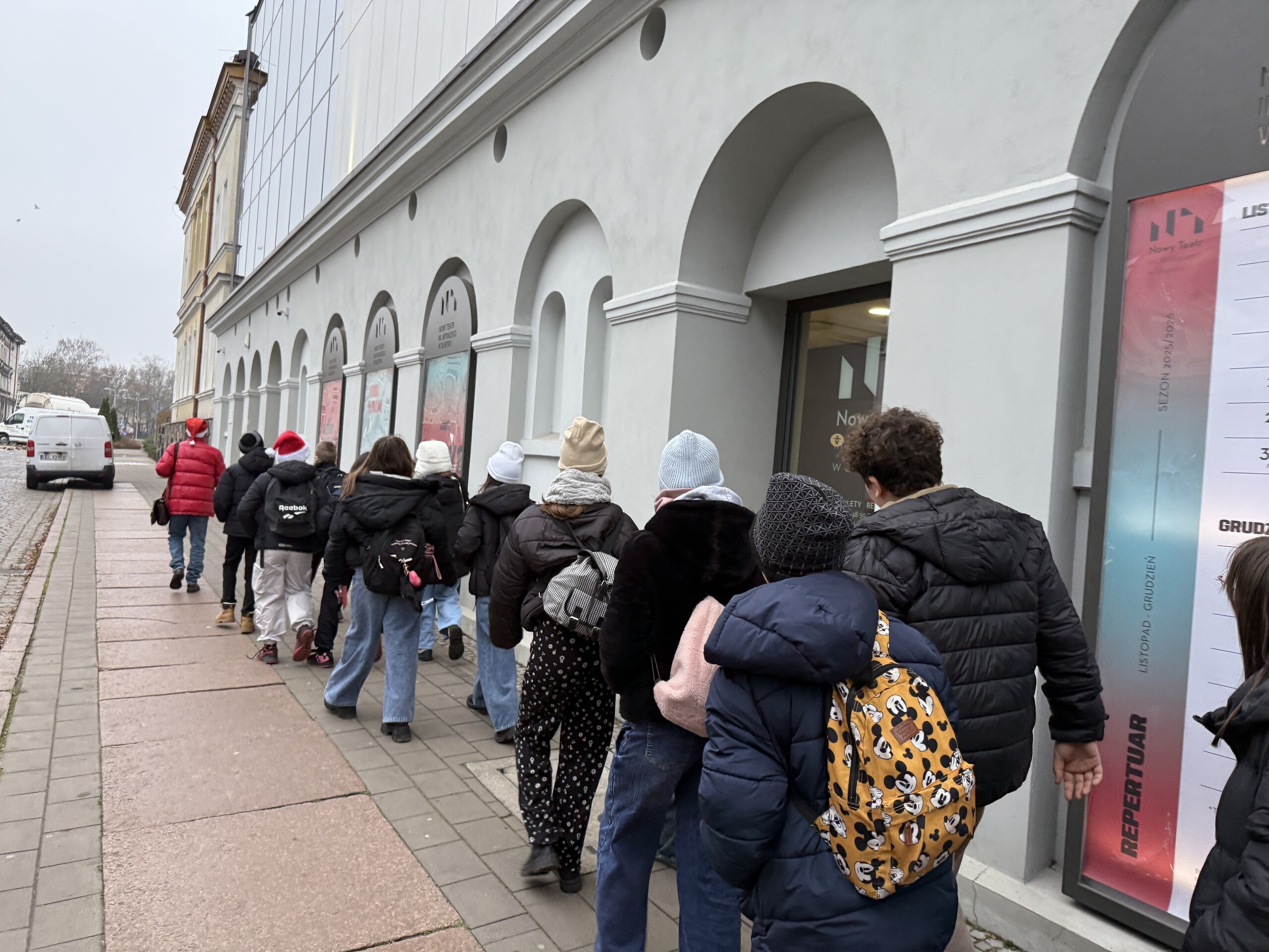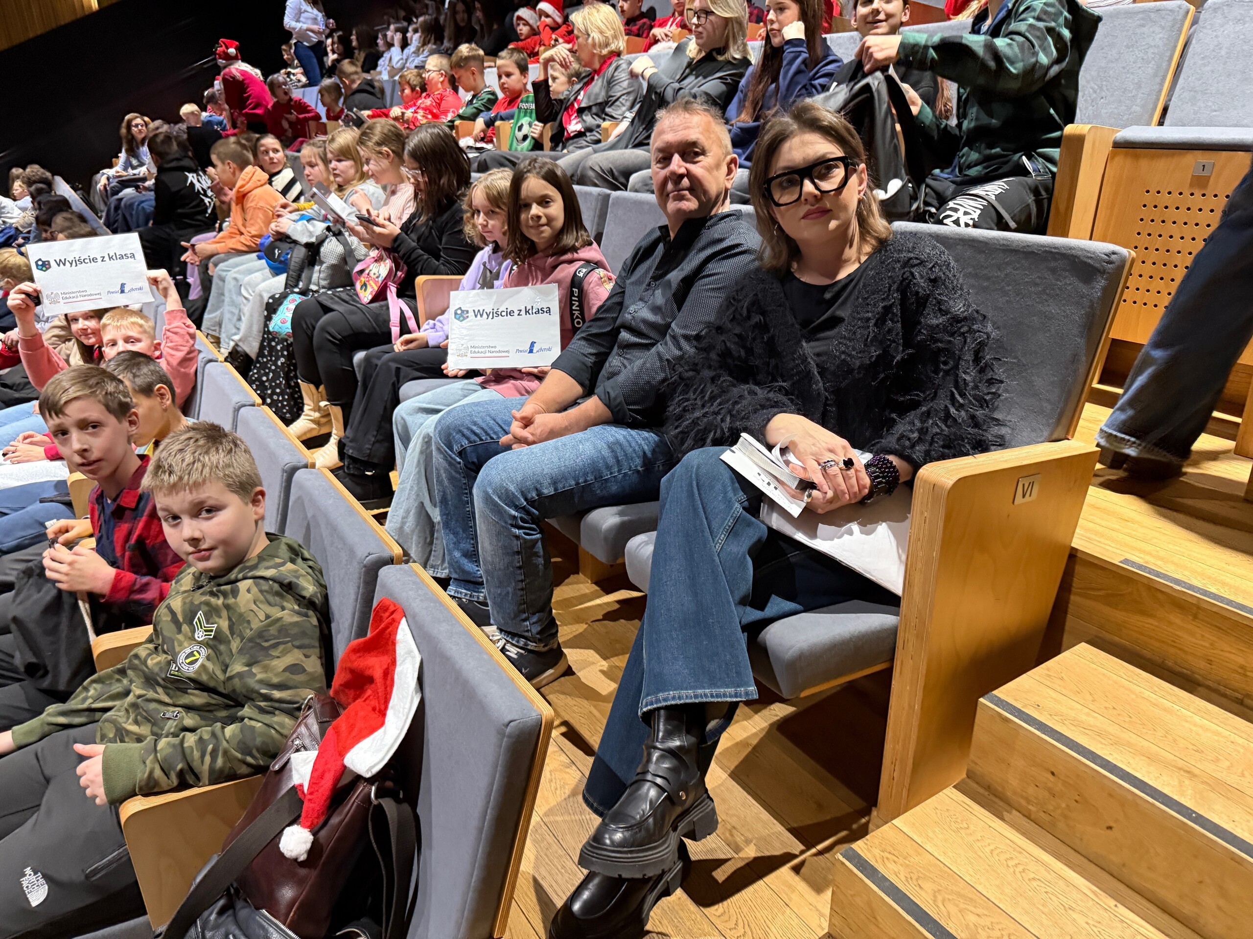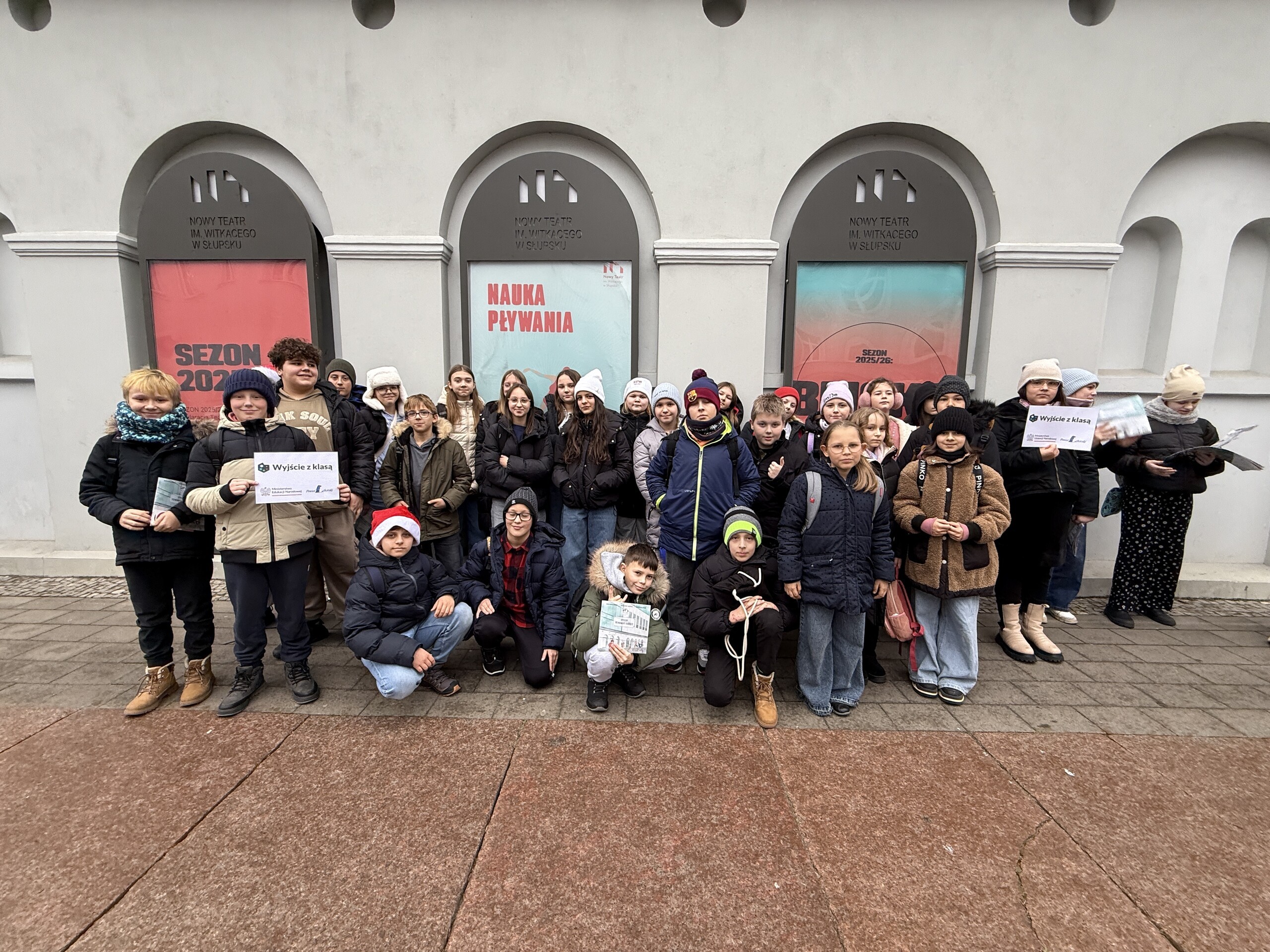 W piątek, uczniowie klasy 4,5 i 6 w ramach projektu "Wyjście z klasą" pojechali do Nowego Teatru w Słupsku gdzie obejrzeli „Opowieść wigilijną”. Po spektaklu nasi uczniowie wzięli udział w warsztatach pt. "Savoir- vivre, czyli zasady dobrego zachowania w Nowym Teatrze". Na zakończenie zjedli przepyszny dwudaniowy obiad uwieńczony deserem.